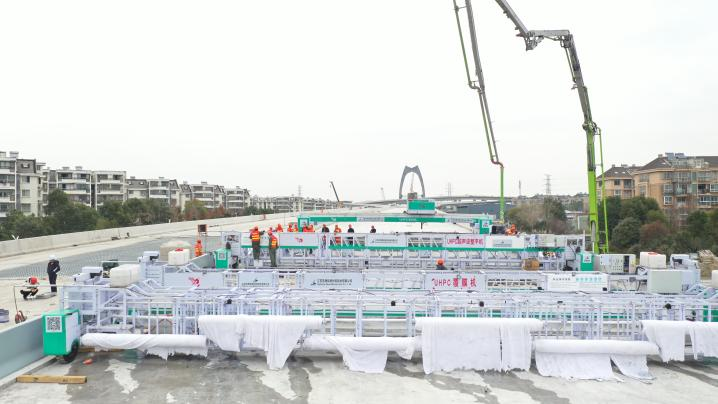 施工I标主线组合钢桥面铺装面积合计约8855m2, SMA-13(SBS改性沥青)面积约8678m2;使用超高性能混凝土(UHPC)共538.4 m3(其中铺装层531.3m3,平石7.1m3);匝道组合钢桥面铺装面积合计约27172m2,SMA-13(SBS改性沥青)面积约25042m2;使用超高性能混凝土(UHPC)共1715.5m3(其中铺装层1630.3m3,平石85.2m3);Φ13x40剪力钉约99.69万个,HRB400钢筋约1143.67吨。